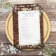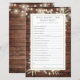 Avec de jolies guirlandes lumineuses et de délicates feuilles de verdure à l'aquarelle sur un fond en bois rustique, ce jeu de salle de mariage amusant peut être personnalisé avec vos propres questions sur qui connaît le mieux la mariée. Conçu par Thisisnotme©