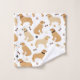 De mignons chiens Golden Retriever avec des manteaux foncés et légers s'asseyent et se tiennent avec des os de chien éparpillés et des pawprints sur un arrière - plan blanc.