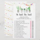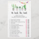 Ces cartes élégantes du jeu Il a dit/Elle a dit sont une activité amusante pour une douche de mariée. Il suffit de les faire circuler pendant la douche de mariée où les invités s'amuseront à deviner qui a dit chaque déclaration. Vous pouvez même personnaliser les phrases ! Le design présente des succulentes aquarelles avec des accents de paillettes dorées et des drapeaux de fiesta colorés.