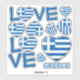 Mot "AMOUR" avec un drapeau en forme de coeur de la Grèce. Ensemble d'autocollants de contour personnalisé.
