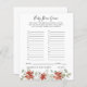 Cette carte de jeu de baby shower présente de belles fleurs d'hiver d'aquarelle douce dans les tons rouge et blanc qui sont équilibrées avec la verdure luxuriante, ce qui en fait une palette chaude et aérée. Changez de couleur arrière - plan ou ajoutez des graphiques pour correspondre à votre thème de douche. Besoin de coordination graphique s'il vous plaît contactez-moi pour une commande personnalisée. Bien sûr, il n'est pas nécessaire de jouer à des jeux au baby shower, mais considérez ceci : vous allez avoir un groupe de tous les âges, et la plupart des invités n'ont probablement jamais rencontré l'un l'autre avant la fête. Mélanger dans quelques-uns de ces jeux de baby shower classiques est une façon parfaite de briser la glace. Ces cartes professionnelles sont rapidement personnalisables. Ajoutez votre libellé personnalisé à cette conception à l'aide des cases "Modifier ce modèle de conception" situées à droite de l'élément, ou cliquez sur le bouton bleu "Customiser" pour arranger le texte, modifier les polices et les couleurs et ajouter des informations ou des images supplémentaires à cette conception. Cliquez sur "Customiser plus loin" pour ouvrir les options d'édition complètes. Si vous avez besoin d'éléments de coordination (cartes de remerciements, etc.), veuillez me contacter pour une commande personnalisée. ****Pour les demandes personnalisées avec lesquelles vous avez besoin de mon aide, ne placez pas cette marchandise dans votre panier. Au lieu de cela, envoyez-moi votre demande par courriel à lauralise@iyhtvdesigns.com Un lien vers votre marchandise vous sera envoyé par courriel une fois que l'article sera disponible. Vous pouvez utiliser ce lien pour passer votre commande. Veuillez compter jusqu'à 48 heures.
