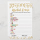 Achetez ce jeu et profitez d'une carte émoticône nuptiale de haute qualité pour votre événement! Devinez le mot ou la phrase écrit avec des émoticônes ! RÉPONSES : 1 FÊTE DES MARIÉES, 2-BRIDE-TO-BE, 3-HONEY LUNE, 4-TILL DEATH FAITES PARTIE, 5-TOSS LE BOUQUET, 6-BACHELORETTE, 7-RING BEARER, 8-FLOWER GIRL, 9-KISS BEAUCOUP DE FROGS POUR TROUVER VOTRE PRINCE, 1 0-AIMEZ-VOUS LA LUNE ET LE DOS, 11-CHAMPAGNE TOAST, 12-SWEET HEART, 13-KISS THE BRIDE, 14-CUT THE CAKE, 15-VOUS ME MARIER ? Design Gold Confetti.