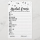 Achetez ce jeu monochrome et profitez d'une carte émoji nuptiale de haute qualité pour votre événement! Devinez le mot ou la phrase écrit avec des émoticônes ! Design noir et blanc. RÉPONSES : 1 FÊTE DES MARIÉES, 2-BRIDE-TO-BE, 3-HONEY LUNE, 4-TILL DEATH FAITES PARTIE, 5-TOSS LE BOUQUET, 6-BACHELORETTE, 7-RING BEARER, 8-FLOWER GIRL, 9-KISS BEAUCOUP DE FROGS POUR TROUVER VOTRE PRINCE, 1 0-AIMEZ-VOUS LA LUNE ET LE DOS, 11-CHAMPAGNE TOAST, 12-SWEET HEART, 13-KISS THE BRIDE, 14-CUT THE CAKE, 15-VOUS ME MARIER ?