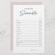 La carte classique de jeu de douche nuptiale comprend un mot mariage scramble avec 15 mots jumelés pour que vos invités se débrouillent. Comptez le nombre de réponses correctes pour déterminer le gagnant. RÉPONSE CLÉ Groom Femme en lune de miel Registre Bouquet Réception Fille Fête des mariées anneaux Fleurs Aisle Photographe Cérémonie Vows