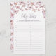 Faites de votre baby shower un succès fulgurant avec le jeu de Bébé mou pourpre et rose papillon! Ce jeu fantaisiste est parfait pour n'importe quel baby shower de fille. Ce jeu de baby shower papillon fera sourire et rire vos invités. Les joueurs essaient de deviner un objet bébé mignon qui correspond à chaque lettre. C'est une façon merveilleuse pour chacun de se mêler et de profiter de la fête. Les adorables illustrations de papillons violets et roses apportent une touche de charme supplémentaire. N'importe quelle maman-to-be et ses proches trouveront ce jeu absolument délicieux ! Faites des souvenirs qui seront derniers longtemps après la fin de la douche.