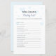 Jeu pour Baby Shower Blue Hearts Qui Connaît le mi