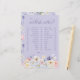 Impliquez vos invités dans des prédictions ludiques avec notre jeu de baby shower « Would She Rather », magnifiquement encadré par des fleurs sauvages pastel peintes à la main et de délicats papillons roses et violets sur un fond doux de lavande. Cette carte de jeu charmante ajoute non seulement du plaisir à votre événement, mais complète également magnifiquement le thème enchanteur, ce qui en fait un ajout parfait à vos activités de baby shower.
