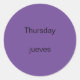 Ces autocollants du jour de la semaine comportent le mot jeudi ainsi que la traduction de l'anglais à l'espagnol, jueves. La couleur arrière - plan est le violet, qui peut être customisé. Merci pour faire du shopping CherylsArt sur Zazzle.