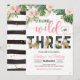 Célébrez le grand moment de votre petit bout avec cette adorable invitation d'anniversaire "Jeune, Sauvage et Trois ans", dotée d'une esthétique bohème chic élégante. Conçue parfaitement pour une fête d'anniversaire endiablée pour trois ans, ce modèle comprend une typographie fantaisiste et des accents vibrants qui capturent sa personnalité enjouée. Personnalisez facilement la date, l'heure et les détails du lieu pour créer une carte personnalisée professionnelle qui mettra les invités en joie pour la fête.