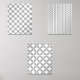 Un ensemble de magnifiques dessins abstraits géométriques gris clair. Ce pack d'impression est composé de pois, de bandes de chevrons et d'un design de treillis marocain