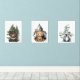 Un ensemble mural parfait pour un garçon ou une fille. Les adorables petits ours dans leurs habitats naturels font un adorable ensemble d'art en 3 pièces. Comprend un koala, un ours noir et brun. Disponible en différentes tailles. (Imprimé sur papier à poster - vous devez ajouter votre propre cadre.)