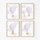 Ajoutez des touches de finition à la crèche de votre bébé ou à la chambre de votre enfant avec ces magnifiques gravures d’art ! Le design comprend des montgolfières violettes, des animaux (lapin, ours, éléphant), une lune, des nuages et des étoiles.