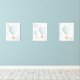 Ajoutez des touches de finition à la crèche de votre bébé ou à la chambre de votre enfant avec ces magnifiques gravures d’art ! Le design comprend une montgolfière bleue, des animaux (lapin, ours, éléphant), une lune, des nuages et des étoiles.