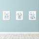 Ajoutez des touches de finition à la crèche de votre bébé ou à la chambre de votre enfant avec ces magnifiques gravures d’art ! Le design présente des éléphants, des fleurs d'aquarelle bleue et de la verdure.