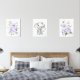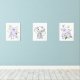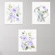 Ajoutez des touches de finition à la crèche de votre bébé ou à la chambre de votre enfant avec ces magnifiques gravures d’art ! Le design présente des éléphants, des fleurs d'aquarelle violette et de la verdure.