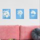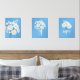 Jeux D'art Mural Fleurs marguerites blanches Monogramme Blue Set de