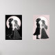 Gothique Emo Cute Kids Dark Valentine's Day Kiss on Pale Pink Romantic Moonlight, Love themed Vector illustration Copyright BluedarkArt TheChameleonArt.