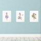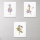 Un trio d'estampes avec des pixies florales violettes enchanteresses. Il y a la Pixie Rose accompagnée d'un bébé, la Pixie Peony avec un papillon délicat, et la Pixie Starflower avec un charmant bourdon. Il s'agirait d'un délicieux ajout à la crèche d'une petite fille conçue sur un thème de fée ou à la chambre d'une petite fille qui adore les fées.