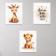 Créez un espace calme et confortable avec ce charmant ensemble mural de pépinière sur le thème du safari. Doté d'illustrations d'aquarelle peinte à la main d'un lion-bébé et d'une girafe, à côté d'une douce citation "Dream Big, Little One", ce trio est parfait pour des chambres pour bébés neutres ou des crèches sans sexe. Idéal pour les baby showers, les cadeaux de nouveau-nés ou les parents décorant leur safari ou leur crèche à thème de jungle. Les tons beige et terre doux rendent l'établissement facile à associer à un intérieur moderne ou boho. Disponible en plusieurs tailles et imprimé sur papier de qualité supérieure, parfait pour le cadrage