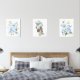 Ajoutez des touches de finition à la crèche de votre bébé ou à la chambre de votre enfant avec ces magnifiques gravures d’art ! Le design est composé de zèbres, de fleurs d'aquarelle bleue et de verdure.