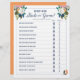 Vous ne voulez pas imprimer vos propres jeux de baby shower, utilisez plutôt ces flyers. Commandez la quantité nécessaire ; Jeu de baby shower "Devinez qui est la mariée ou le marié ?"