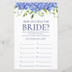 Cette belle hydrangée bleue How Old Was The Bride? nuptiale feuille de jeu de douche est élégant et charmant - parfait pour tout jardin, botanique, rustique, romantique, floral, formel ou vintage mariage. Son magnifique mélange d'hydrangées bleues multicolores gracieuses et de verdure feutrée est fleurie, délicate et belle. Ce jeu amusant et facile est sûr d'apporter beaucoup de rire à toute douche! Demandez à votre famille et à vos amis de vous envoyer des photos de la mariée à différents âges et de les faire imprimer. Numérisez-les et mettez-les près de ces feuilles de jeu. Donnez simplement un drap à chaque invité (n'oubliez pas les stylos) et laissez la compétition commencer ! Vous serez surpris de voir combien de personnes connaissent vraiment l'âge de la mariée. En quelques secondes, vous pouvez voir comment votre feuille de jeu va apparaître. Sélectionnez simplement Personnaliser ce Modèle et tapez le nom de la mariée.