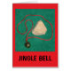 A gold jingle bell on a red chord and a rock, photographed against a green background, is the subject of my "Jingle Bell Rock!" Christmas Card