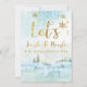 Invitation de fête en bleu blanc et or calligraphie hiver bois aquarelle peinture avec texte personnalisable