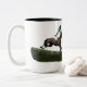 Cheval Et Jockey En Vert, Mug De Café. Art numérique. "Si vous montez dans la selle, soyez prêt pour la course." Voici les balades pas si faciles. Cheval de course Steeplechase & jockey en vert. Modifiez le libellé, la police ou supprimez-le complètement.
