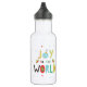 Cette mignonne bouteille d'eau Joy to the World contient beaucoup de couleurs et des images d'étoiles, de coeurs, de flocons de neige, de saints, d'un arbre de Noël et d'ornement. Une bouteille d'eau gaie pour la saison de Noël.