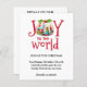 JOIE amusante et colorée à l'invitation du service de Noël de l'Eglise mondiale. Le texte dit JOY TO THE WORLD et est basé sur le populaire carol chrétien de Noël du même nom. Le O in JOY est remplacé par un pudding festif de prune, qui incorpore une sélection de DRAPEAUX DU MONDE contre un arrière - plan blanc clair. En bas, il y a une invitation personnalisable, et les détails des services de l'église peuvent être édités par-dessus. Il s'agit d'une invitation non formelle et conviviale pour les chercheurs à visiter l'église pendant la période de Noël. N'oubliez pas d'ajouter des enveloppes, si nécessaire.