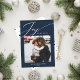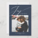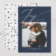 Partagez la « joie » des fêtes avec vos amis et votre famille ! Ces cartes de vœux modernes, simples et élégantes de 18x13 cm présentent une typographie moderne en blanc sur fond bleu marine, avec un espace pour votre photo préférée.