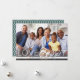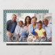 Un moyen propre, élégant et moderne d'envoyer vos souhaits de vacances, notre carte photo de vacances Bold Joy présente "Amour & joie" dans la typographie moderne avec un ampersand décoratif, et vos noms ou message personnel affichés en vert d'épinette sur une bande blanche croustillante. Personnalisez avec votre photo familiale préférée orientée paysage. Les cartes renversent vers un motif géométrique festif en vert et blanc d'épinette.