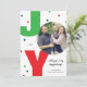 Prenez la luminosité de la saison, avec la fête JOY Red and Green Photo Christmas Card. Ce carte photo moderne présente le mot JOY en lettres vert et rouge gras. La lettre O est un endroit circulaire pour présenter votre photo de famille préférée de l'année. Les lettres colorées et les points rouges et verts ludiques apparaissent sur l'arrière - plan blanc immaculé. Le charme se prolonge sur le dos de la carte avec des pois blancs ludiques éparpillés dans un arrière - plan rouge massif. Envoyez une carte à vos proches pour une déclaration joyeuse en cette période de fêtes.