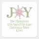 Un simple flocon de neige vert avec le mot JOIE. Une carte de vacances idéale pour quiconque recherche une carte simple et minimaliste. La couronne a des baies rouges et des boules argentées entrelacées avec des feuilles de pin vertes. Le verso rouge est entièrement modifiable. Une excellente carte pour souhaiter à tous ceux sur votre liste de Joyeuses Fêtes ou un Joyeux Noël. Ce design présente Noël flocon de neige moderne hiver joie, étiquettes d'adresse de retour de Noël, écriture moderne chic simple brosse, tendance mignonne minimaliste amusante, typographie de script de joie flocons de neige, classique fantaisiste vintage, carré simple propre classique, étiquettes élégantes créatives de classe, personnaliser sur mesure élégant chic fantaisie, un sceau d'enveloppe avec nom de famille.