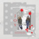 Elégante carte de style plat de Noël gris clair, avec des graphiques de branches blanches et des baies rouges et du texte rouge lisant JOY. Personnalisez le texte et l'image personnalisés selon vos besoins de vacances. Des produits correspondants sont disponibles. Photo du modèle de Lorri Lang.