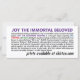 Carte en rack promotionnelle pour la joie L'Immortel bien-aimé, Partie 3 : Musique - À l'aide de l'anachronisme et de la personnification de "Joy" en tant que belle femme dans un concours de beauté moderne, JOY THE IMMORTAL BELOVED est un triptyque en trois parties comprenant JOY, INSPIRES et MUSIC qui représente des clichés de Ludwig van Beethoven puisant son inspiration utilisé pour composer son célèbre "Ode to Joy". Tout comme l’attrait universel d’une femme magnifique, la beauté de la Neuvième Symphonie de Beethoven est largement appréciée par de nombreux publics variés. Placer le compositeur hors contexte dans notre monde pop centré sur la culture sert de métaphore à la popularité et au statut de rockstar de Beethoven, tandis que la fusion d’éléments high brow et low brow illustre que la musique classique n’est pas seulement pour les snobs élitistes. Tout cela est réalisé tout en jouant sur le mystère qui entoure le soi-disant bien-aimé immortel de Beethoven.