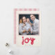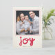 Une carte de voeux moderne et fantaisiste avec le mot "JOY" en gras, rouge, avec un amusant motif de dos rouge et blanc. Customisez-le avec votre propre photo. La plupart des éléments/types de conception peuvent être déplacés/modifiés/supprimés selon votre choix/préférence. Contactez-moi à sika_273@yahoo.com si vous voulez la carte dans une couleur ou une taille différente. Merci pour la navigation !