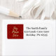 Ajoutez une touche superbement coordonnée à tous vos messages de vacances avec ces étiquettes d'adresse de retour correspondantes. Dotés d'un arrière - plan rouge audacieux et d'un motif vedette d'or festif, ces étiquettes correspondent parfaitement à la carte de Noël classique. Ils sont entièrement personnalisables avec votre nom et adresse de famille, et comprennent le message intemporel "Joy, Peace, Love", ce qui en fait une touche de finition parfaite pour tous vos cartes de fin de année.