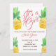 C'est un mignon invitation de baby shower tropical. Il y a 4 ananas et les mots "C'est une fille" sur le dessus. Parfait pour toute soirée à thème tropical ananas
