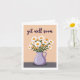 Envoyez à votre proche une carte de voeux chaleureuse et joyeuse pour aider à égayer sa journée. Imaginez une illustration numérique d'un joli bouquet de marguerites blanches aux centres jaunes vifs, accompagné de fleurs jaunes et de tiges vertes, le tout niché dans un délicat vase violet clair. Ces fleurs sont posées sur une surface gris foncé, ajoutant un contraste subtil à l'arrière - plan doux de couleur pêche. En haut à gauche de l'image, les mots "get well soon" sont écrits dans une police manuscrite dans une teinte mauve foncée apaisante. Cette carte dégage un sentiment de confort et de bien-être, parfait pour envoyer des pensées de guérison et des vibrations positives à quelqu'un de spécial. 🌼 💜