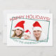 Noël ? ! Vous êtes kitten me ! mignonne carte de voeux pour l'illustration de chaton de Noël. Ne peut-on pas croire que Noël est au coin de la rue ? Nous non plus ! Envoyez vos voeux de Fêtes à vos amis et à votre famille cette année avec cet adorable chat portant une illustration festive de chapeau de Père Noël. Ajoutez votre photo de famille préférée et votre message personnel au verso de la carte. Vous pouvez modifier la police, la taille de police et la couleur.