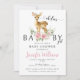 Jolie aquarelle rose bébé cerf fleuri bébé fille invitation à la douche.