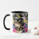 Un chat tigré brun adorable avec le ragondin blanc du Maine de pattes orne cette tasse qui comporte également un papillon et des fleurs. Cette image est également disponible sur d'autres produits dans mon magasin de Zazzle.