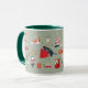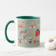 Illustration de Noël rétro mignonne avec des chats autour de l'arbre de Noël, à la recherche de cadeaux, tout imprimé motif sur arrière - plan vert. OEuvre originale de Caroline Bonne Müller
