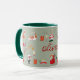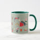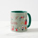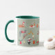 Illustration de Noël rétro mignonne avec des chats autour de l'arbre de Noël, à la recherche de cadeaux, tout imprimé motif sur arrière - plan vert. OEuvre originale de Caroline Bonne Müller