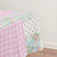 Une nappe chic, avec un joli motif imitation patchwork nostalgique de Dogroses roses sur un arrière - plan bleu ciel avec pois, rayures et plaids assortis. Faisant partie de la collection Posh & Painterly "Rosy Posy", ce motif peut facilement être ajusté pour s'adapter à n'importe quelle nappe.