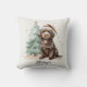 C'est un coussin avec un chien mignon et un motif de Noël.