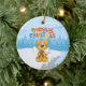 Mignonne Chiot avec un os sur un ornement de cornières enneigées. Parfait pour les amoureux de les chiens. Les enfants adoreront cet adorable et coloré ornement de Noël. Ajoutez un message à l'arrière.