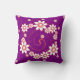 Joli coussin pour la chambre d'une fille présente un design de fleurs blanches et roses sur un arrière - plan violet.